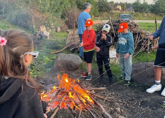 Zakwaterowanie w DW z pełnym węzłem sanitarnym, WiFi. Dostęp do sali świetlicowo – dydaktycznej, boiska wielofunkcyjnego, miejsca na ognisko integracyjne z kiełbaskami. Pełne 4 – daniowe wyżywienie – śniadania i kolacja w formie szwedzkiego stołu, obiad, podwieczorek przy obiedzie.